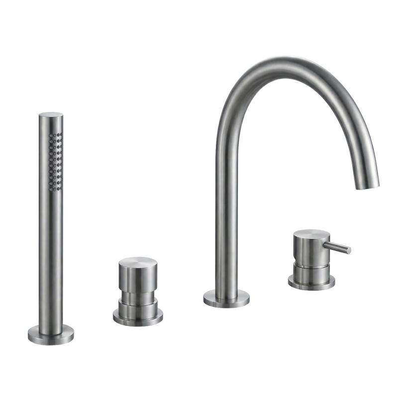 Waterevolution Flow Mitigeur de bain 4 trous pour montage sur le rebord de la baignoire entièrement en inox T138IE